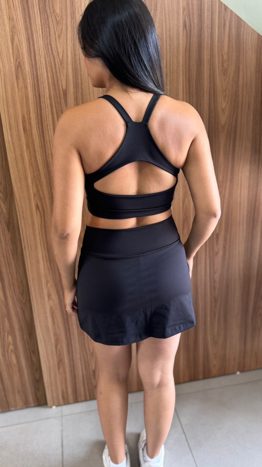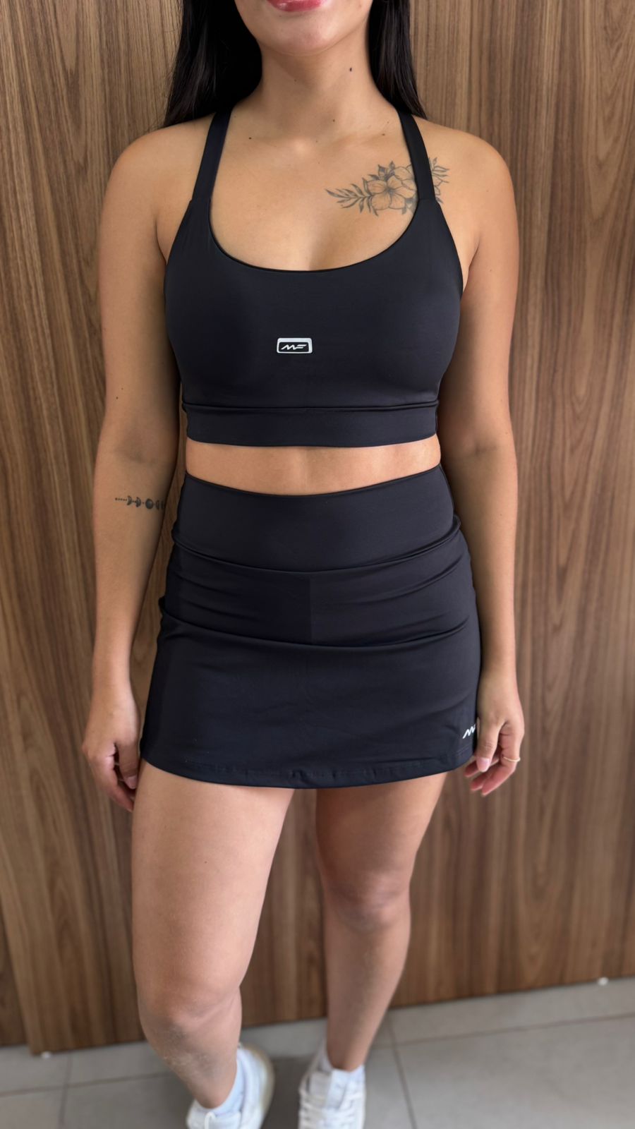 Esse conjunto short saia é confeccionado em poliamida tecnológica, com toque ultra macio, ajuste perfeito no corpo e alta respirabilidade.